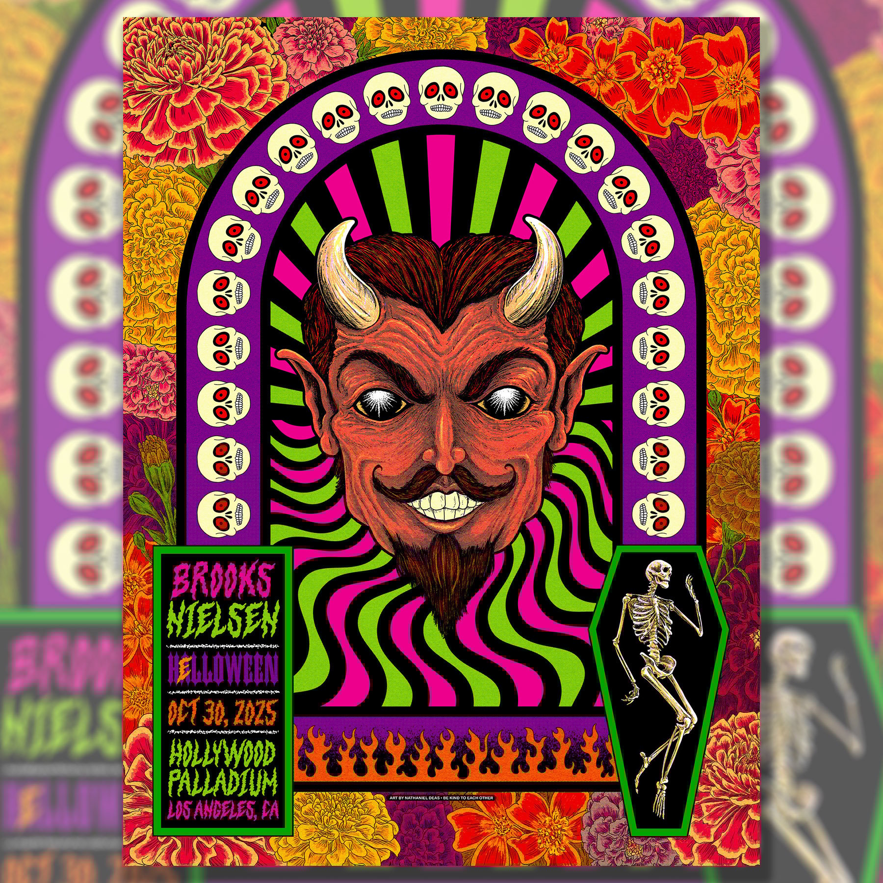 18x24, official poster commemorating the October 30, 2025 "Helloween" show by Brooks Nielsen of The Growlers in Los Angeles, CA. Each print is signed and numbered by the artist (not the band).